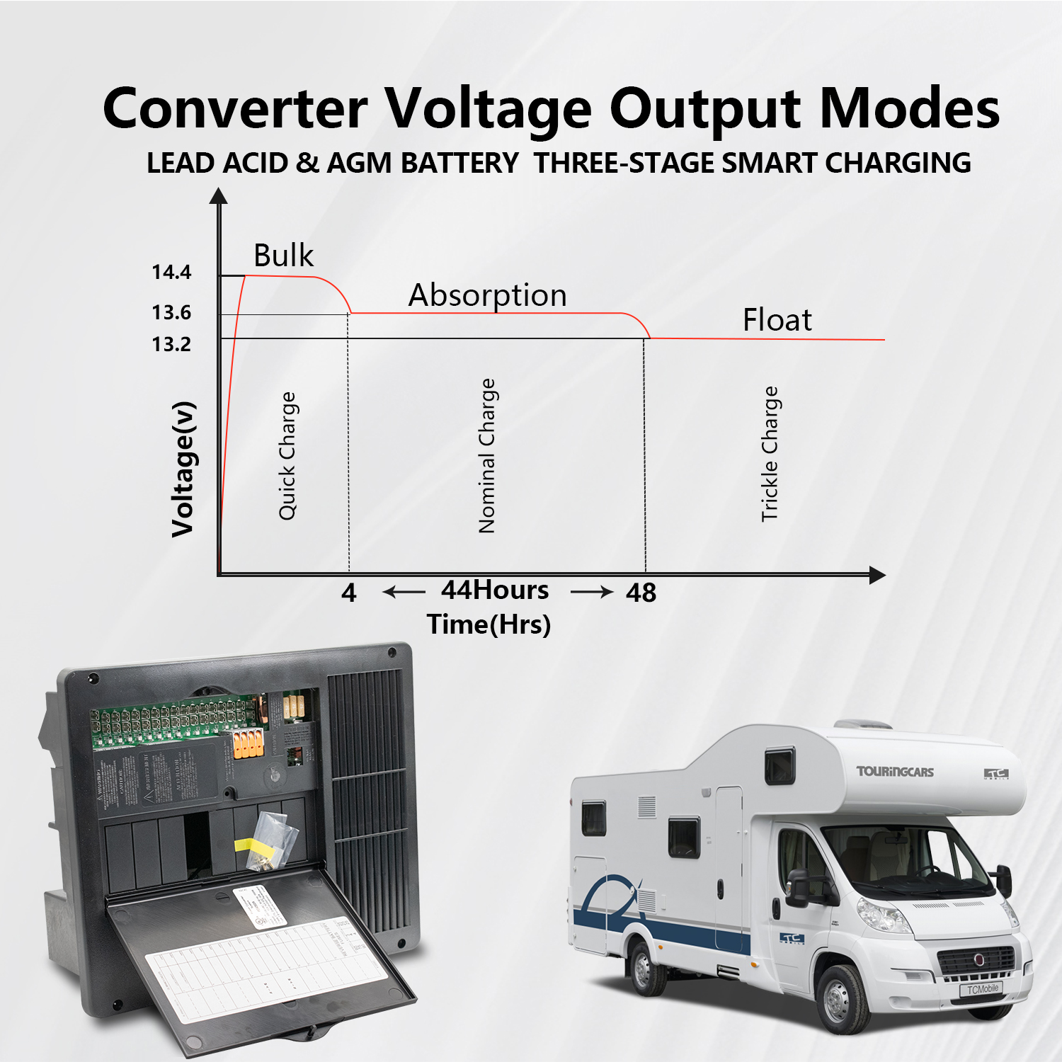 • Input: 105-130 VAC 50/60Hz, 1025 Watts; Output: 13.6 VDC, 60 Amps